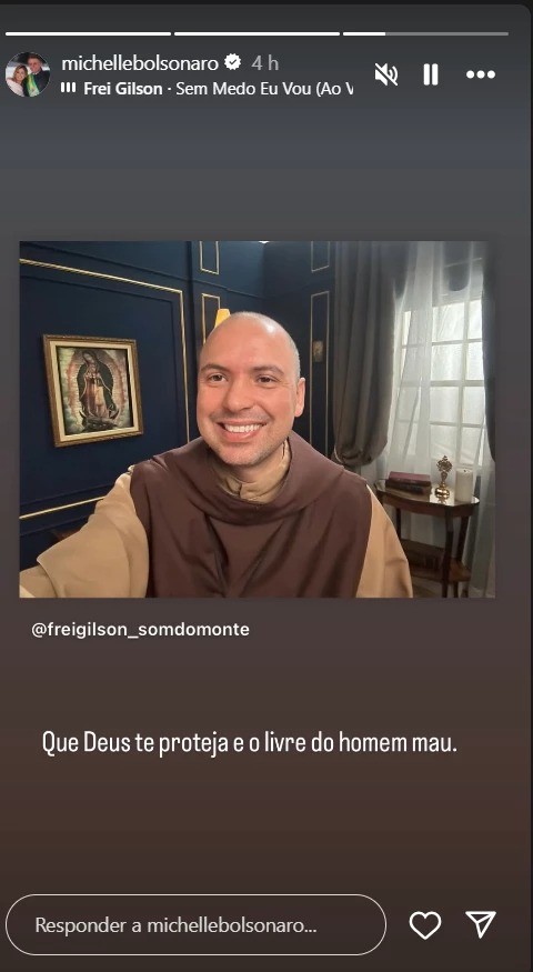 Michelle usou os stories do Instagram para enviar uma mensagem ao frei: